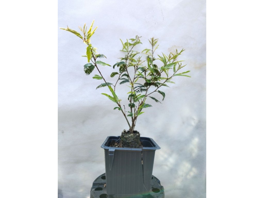 Rozložitý stálezelený keř původem ze severní Ameriky najde uplatnění jako okrasná rostlina. Nesnáší mrazy, proto se u nás pěstuje jen v kontejnerech. Na zimu je potřeba přemístit rostlinu do chladnejši místnosti s přístupem světla. Růžové květenství připomína květy albízie. Plodem jsou pak ploché lusky. Můžete ji využít i jako zelené hnojení. Někdy se pěstuje i jako krmná rostlina pro včely a pro červce produkující šelak.