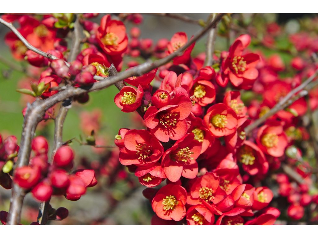 Nabízíme rostliny o vel 10-20 cm, K. Kdoulovec je odolný, nenáročný, trnitý keř, vyhovuje mu slunné stanoviště s běžnou zahradní půdou. Je použitelný jak ve skupinách,  tak i pro nižší živé ploty, volně rostoucí či stříhané. Doroste do cca 2 m. Jeho červené květy jsou velmi atraktivní.